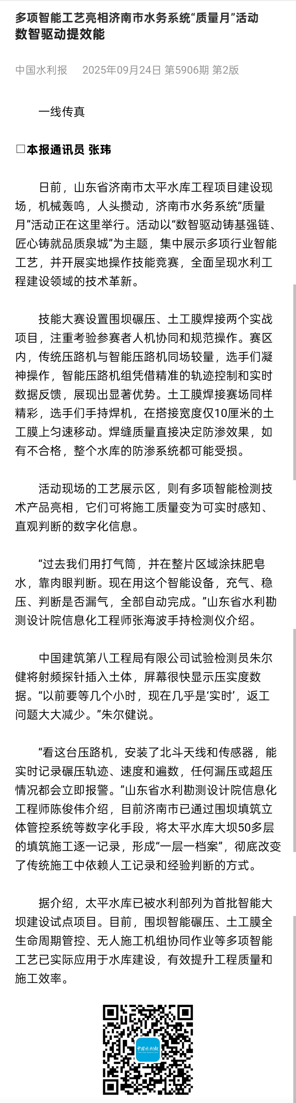 ? ? ? ?下一步,清源水務(wù)集團(tuán)將繼續(xù)以高標(biāo)準(zhǔn)完成項(xiàng)目工程建設(shè),以此次濟(jì)南市水務(wù)系統(tǒng)“質(zhì)量月”活動(dòng)為契機(jī),推動(dòng)太平水庫工程在數(shù)字化轉(zhuǎn)型及智能化管理等方面持續(xù)走深走實(shí),促進(jìn)太平水庫工程高質(zhì)量建設(shè)發(fā)展。