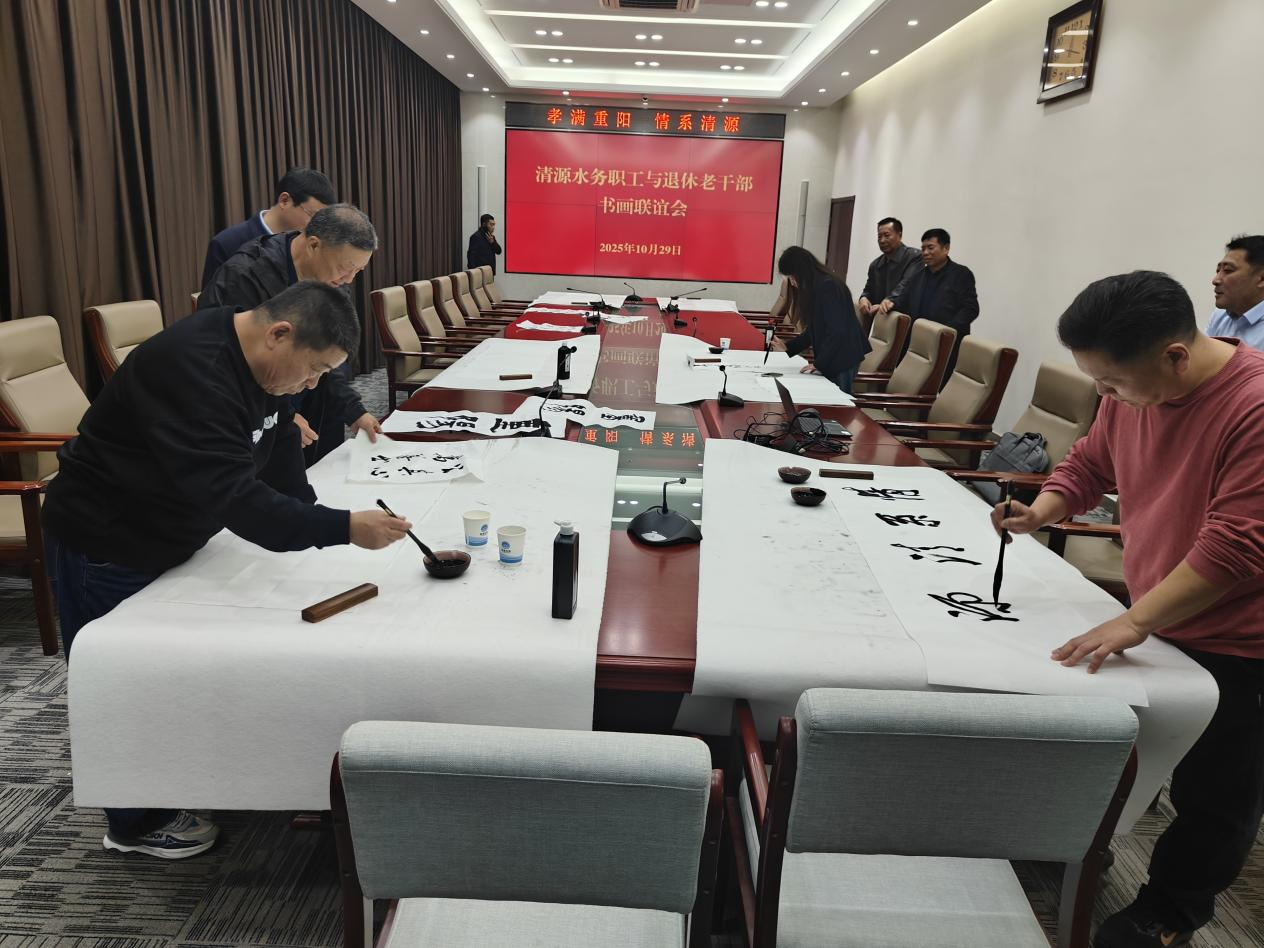 ? ? ? ?活動第二站,來到聚源公司文山泵站開展書畫聯(lián)誼活動,活動室內墨香四溢,長桌鋪展,宣紙備齊,公司書畫愛好者與老同志們一同揮毫潑墨,即興創(chuàng)作。大家寫下對企業(yè)和生活的感悟,既展現(xiàn)了清源人對文化的熱愛,亦營造了和諧融洽的交流氛圍。