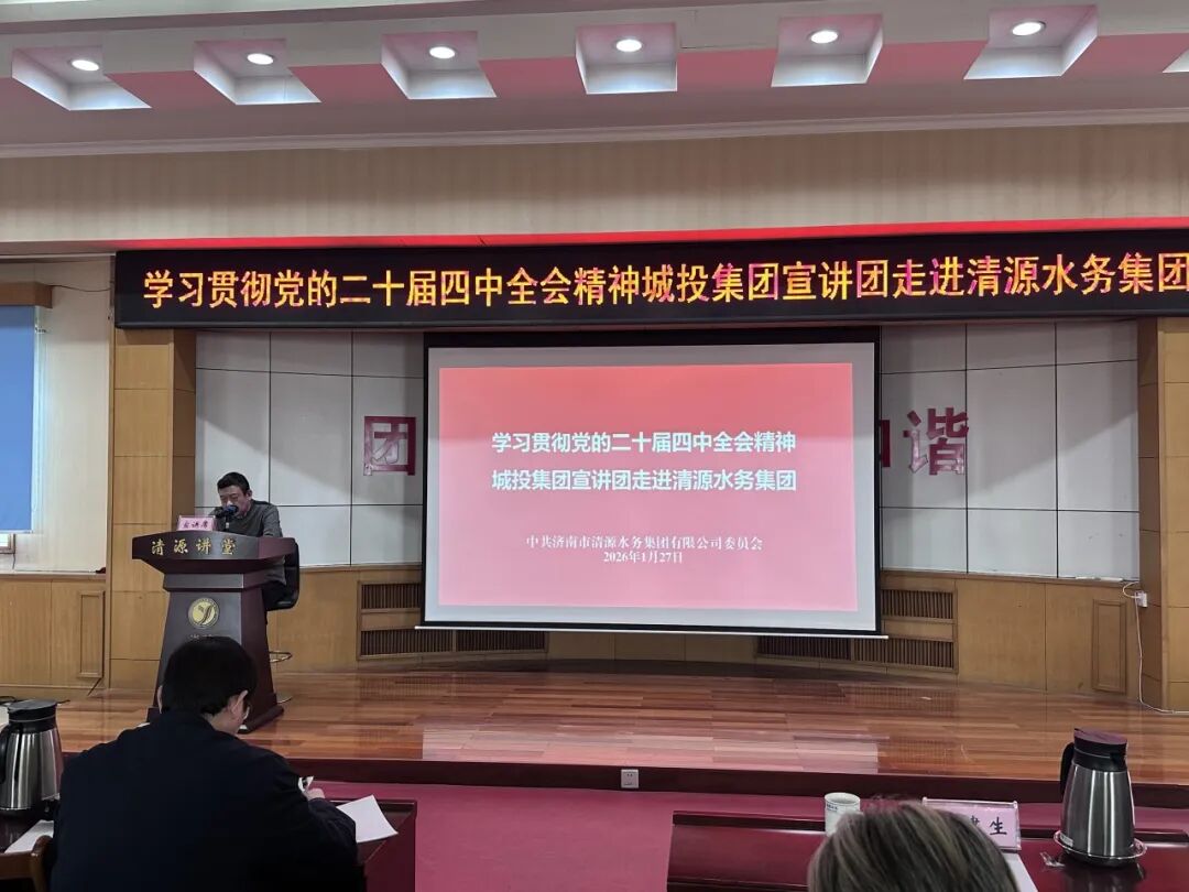 ? ? ? ?為深入學習宣傳貫徹黨的二十屆四中全會精神,完整準確全面把握全會精神實質和豐富內涵,1月27日下午,學習貫徹黨的二十屆四中全會精神濟南城投宣講團走進清源水務集團開展專題宣講。城投集團黨委委員、副總經理姜建生作宣講報告。報告會由清源水務集團黨委書記、董事長魏長學主持。